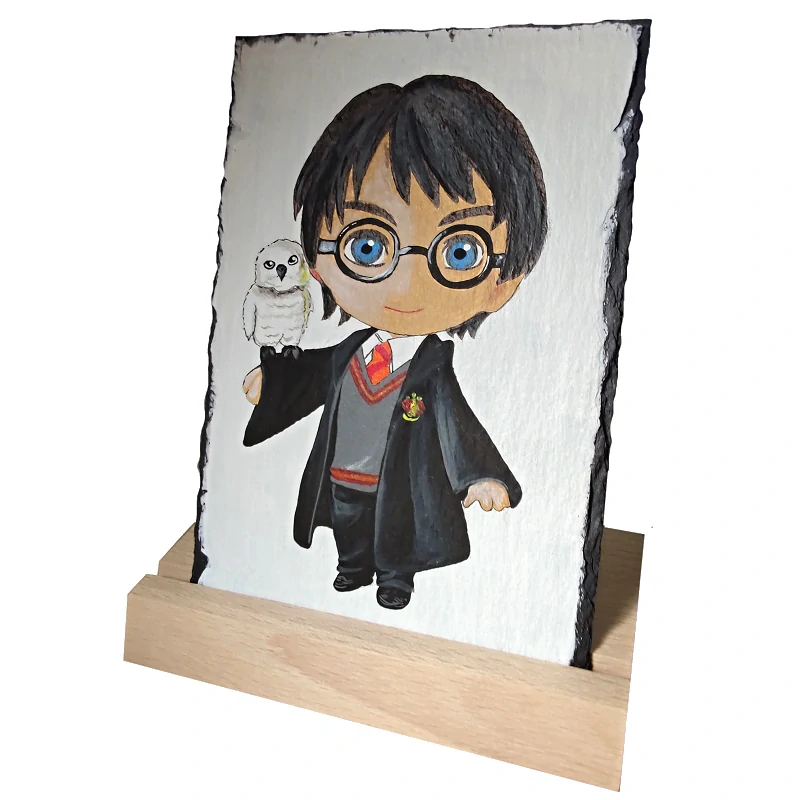 Maľba HARRYHO POTTERA akrylovými farbami na bridlicovej tabuľke so stojanom.